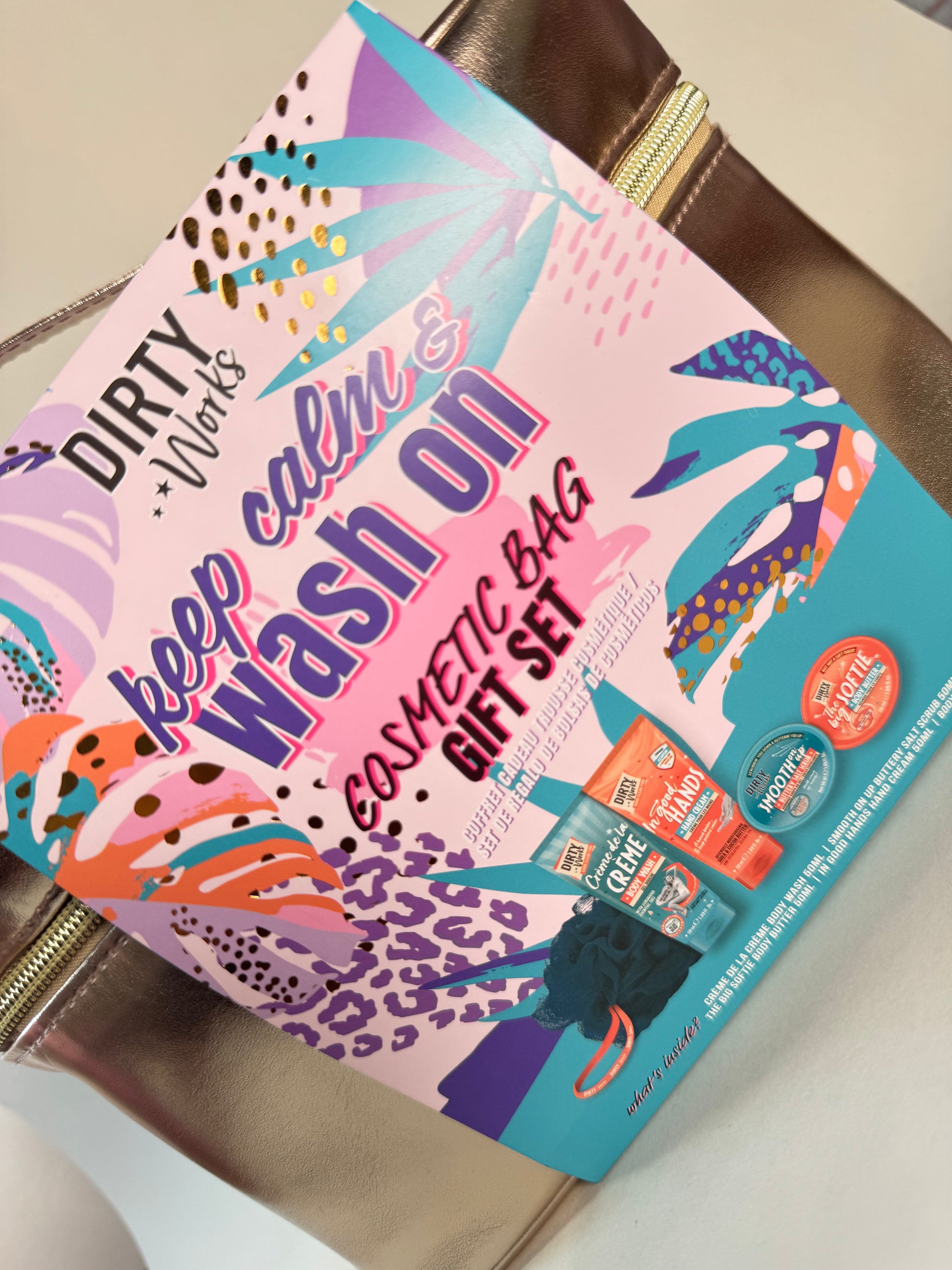 Dirty Works keep calm & wash on cosmetic bag gift set